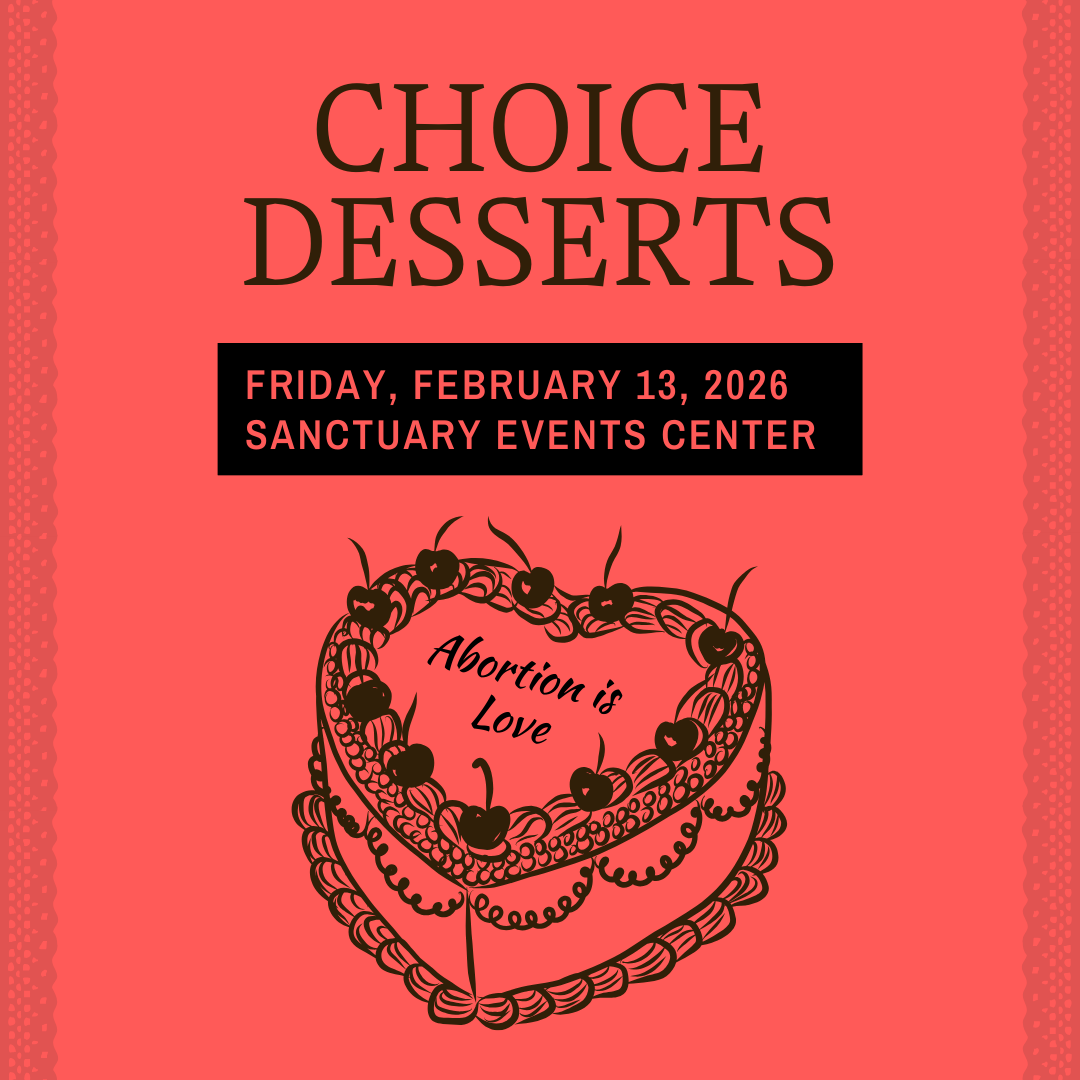 This year’s Choice Desserts will be held on Friday, February 13th, 2026 at Sanctuary Events Center in Fargo, North Dakota from 7-10pm. We’ll enjoy an assortment of desserts, a silent auction, a cash bar, community building, and a program highlighting the work Prairie Abortion Fund has done over the past year and our plans moving forward.